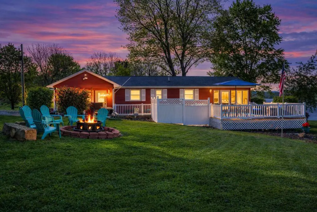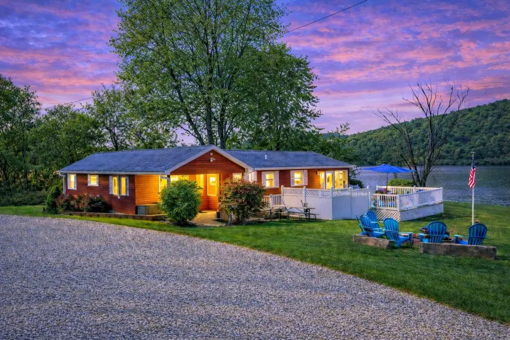 A 3 bedroom, 2 full bath charming space highlighting a 4-season room and extensive decking to watch the activity on Lake Logan, a private hot tub, fire pit, an expansive side yard for lawn games, wifi, smart tv with streaming capabilities, and fishing dock.