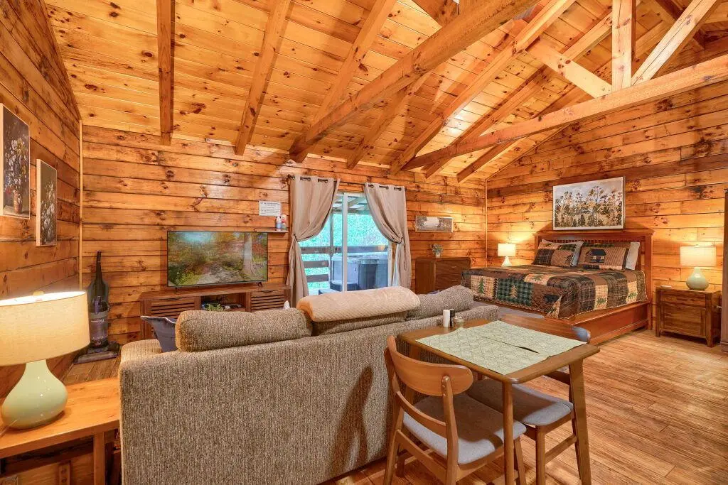 We really enjoy the quiet, seclusion of the cabin, as well as the relaxing hot tub. We wish there was a chest of drawers, as we don't like living out of our suitcase.