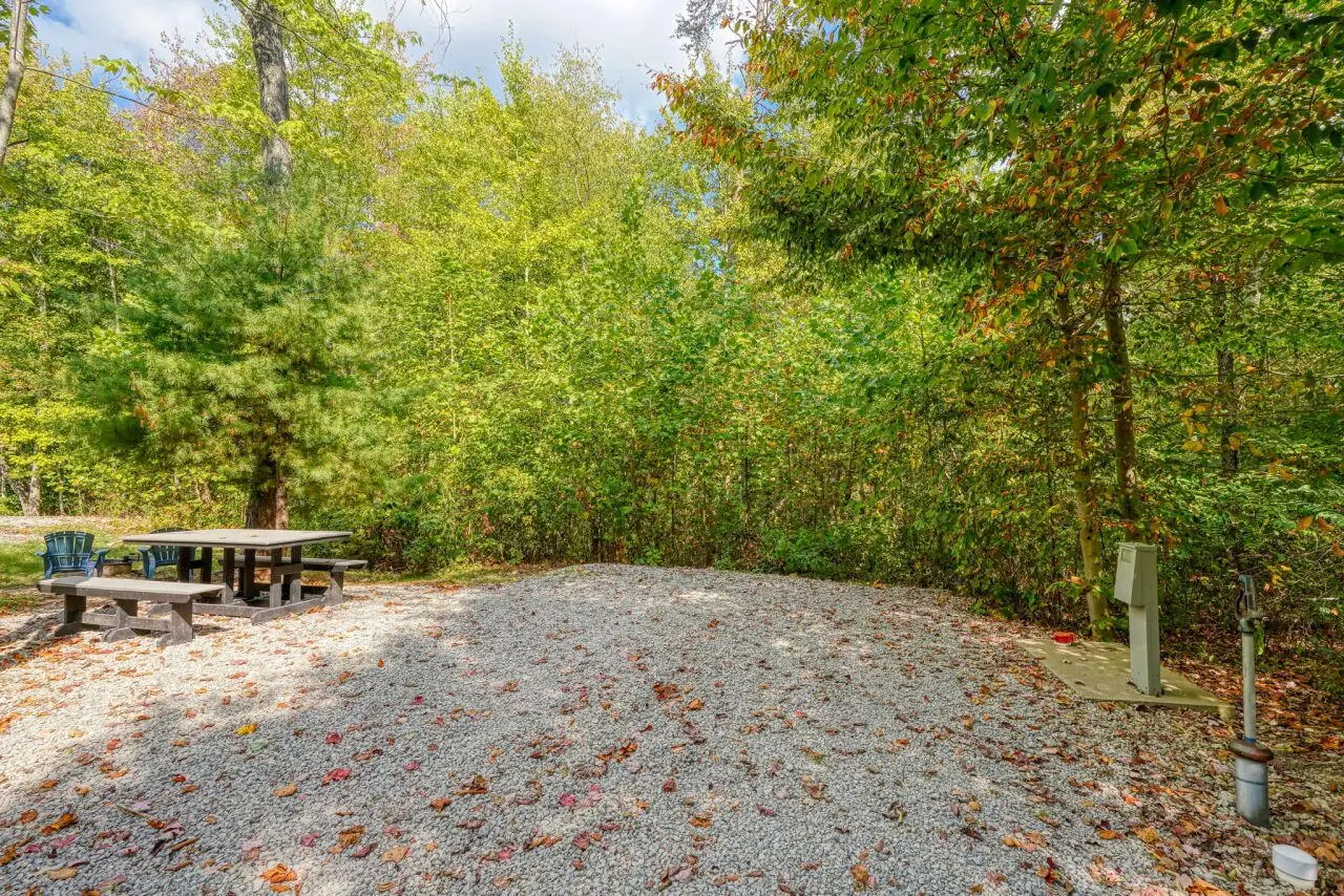 We offer four complete hook up sites for fully contained RV's boasting 40' of green space between each site. Each site has its own water, electric, & sewer hook-ups, has a private fire ring with benches, a charcoal pedestal grill, and picnic table. RV sites are not pull through.