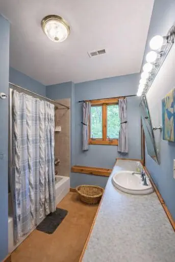 This cabin sits on a quiet street where deer are frequent visitors and you'll find plenty of room to roam/play in the yard.