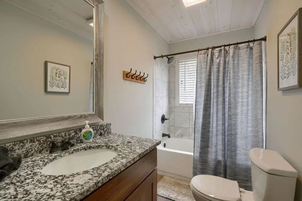 With 3 bedrooms and 2 full bathrooms, this navy abode boasts high speed Spectrum internet, 70" smart tv, a 4-person hot tub, good cell coverage, gas log and electric fireplaces, washer/dryer, and a video game/arcade room. You'll also have access to foosball, an assortment of board games, fire pit and gas grill.