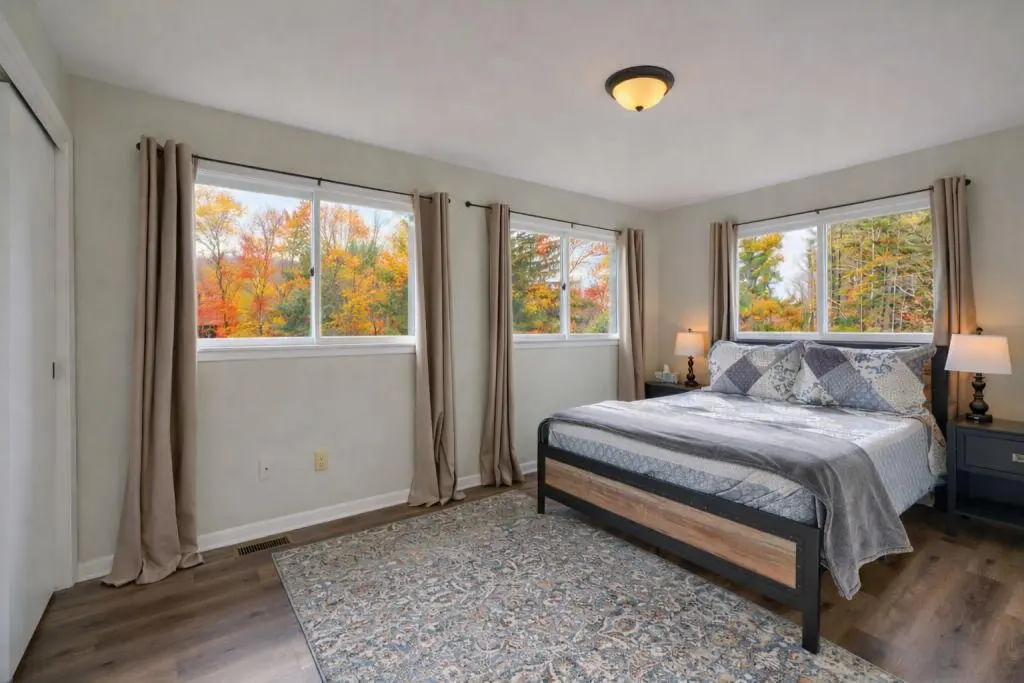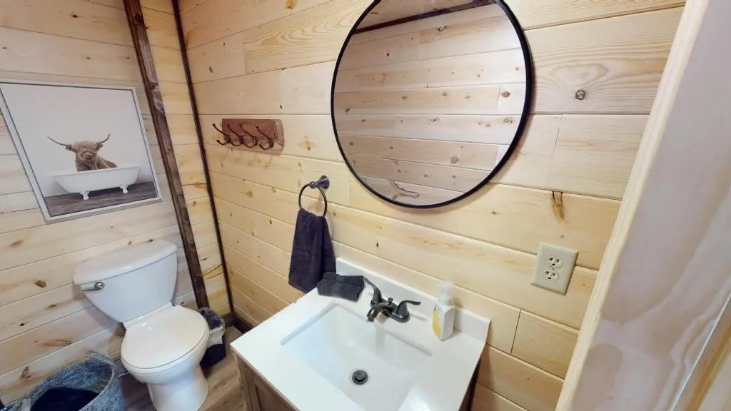 The place was far more than what we expected, very clean, well maintained, spacious, everything you need was available, we had a clean gas grill, charcoal grill, firepit and hot tub, the location was perfect only minutes away from the State Park and the town although on a busy road it was very quiet and peaceful, we didn't see bigfoot but deer did come down every morning, all in all it was a very nice place we enjoyed our stay thank you
