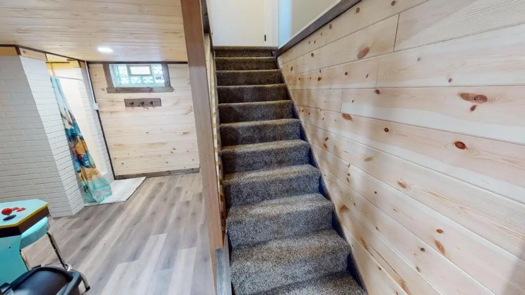 On the main level you'll find 2 queen bedrooms and 1 full bathroom with tub/shower combo. The fully stocked kitchen, main living area with 70" smart-tv, and the electric fireplace are all on this level.